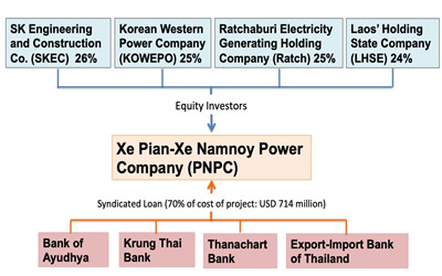 Main project developers and financiers involved in the Xe Pian-Xe Namnoy Hydropower Project.