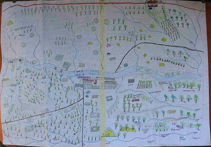 Every time someone completed a picture, the Post-it next to the picture was removed, until the villagers finished drawing pictures of all the natural resources on the map. A community resources map was completed.