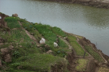また、河岸を畑とするような多彩な土地利用はメコン圏で良く見られるものです。雨季と乾季の明確なメコン河下流域では、乾季に広く現れる河岸を野菜畑として利用します。